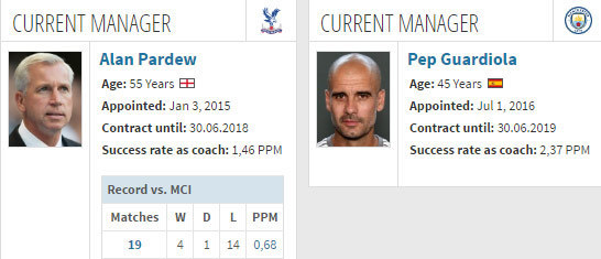 - Data dan Fakta Premier League: Crystal Palace vs Manchester City