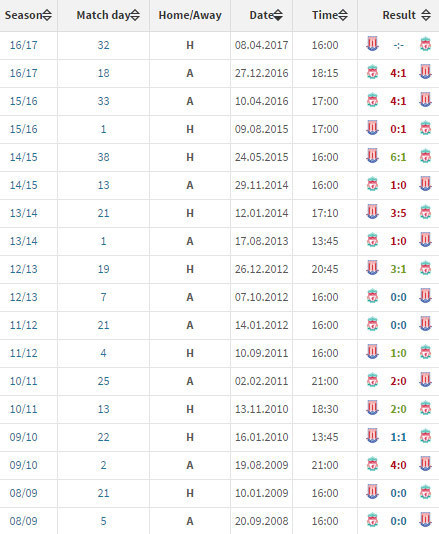 REKOR KANDANG STOKE VS LIVERPOOL (PREMIER LEAGUE)