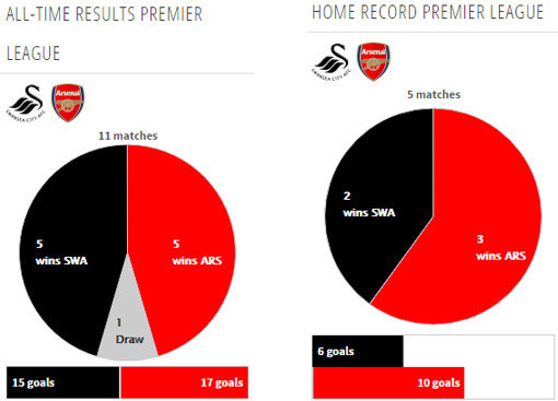 Di Premier League musim lalu, Arsenal menang 3-0 saat tandang ke markas Swansea. Gol-gol Arsenal dalam laga itu dicetak oleh Olivier Giroud, Laurent Koscielny dan Joel Campbell.