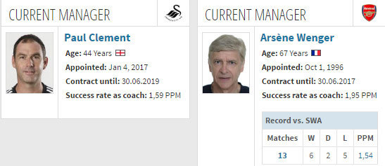 Arsene Wenger vs Swansea