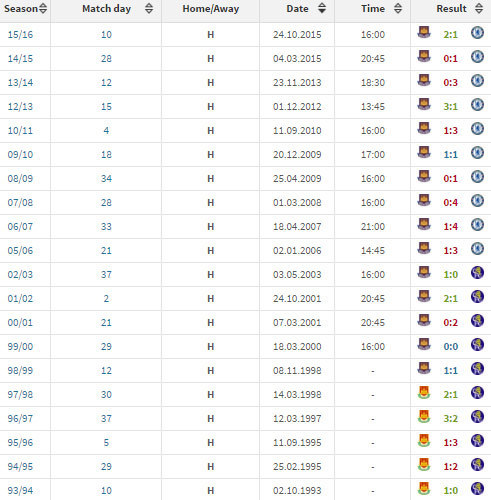 Berikut catatan head-to-head kedua tim. Grafik dan statistik: Transfermarkt.