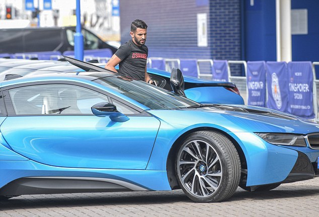Riyad Mahrez melihat mobil BMW I8s yang akan menjadi miliknya.