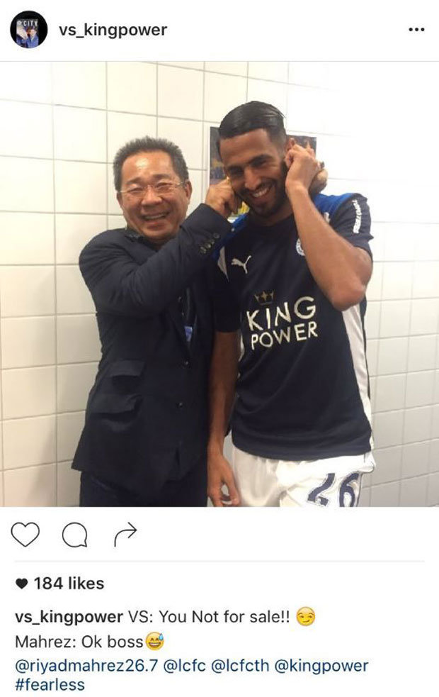 - Pemilik Leicester City Vichai Srivaddhanaprabha menyatakan tak akan menjual Riyad Mahrez di tengah-tengah rumor bahwa pemain Algeria tersebut menjadi incaran sejumlah klub besar.