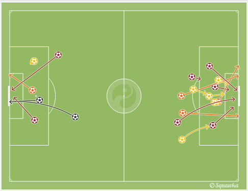 Southampton sebaliknya. Mereka menyerang lebih gencar dan menghasilkan lima shots on target melalui Eljero Elia (2), Filip Djuricic, Morgan Schneiderlin dan Dusan Tadic, tapi sanggup mencetak angka.