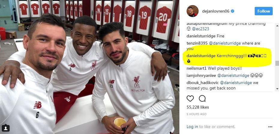 Lovren melengkapi foto tersebut dengan emoji berkedip yang seakan mengisyaratkan sesuatu. Dugaan Can sudah setuju dengan kontrak baru makin kuat setelah Daniel Sturridge dan Alberto Moreno menambahkan komentar dengan emoji uang.