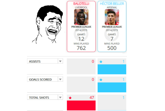 Bandingkan dengan Balotelli, yang tak kunjung mematahkan tabunya di Liga Inggris, meski sudah melepas tembakan sebanyak 47 kali. Tentu tak ada yang mengharap hal tersebut dari seorang pemain yang punya label harga 16 juta poundsterling. [initial]