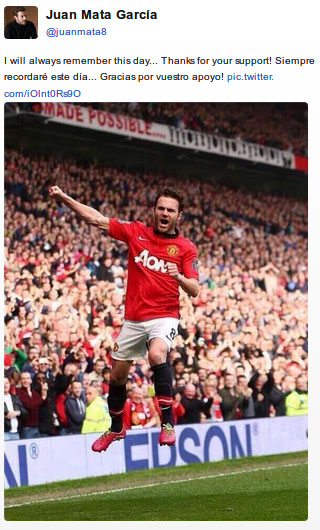 "Saya akan terus mengingat hari ini...Terima kasih untuk dukungan kalian semua!" tutur Mata melalui akun miliknya, @Juanmata8.