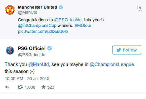 Nah, hal serupa kembali dilakukan oleh PSG, tak lama usai klub Ligue 1 mencatat kemenangan 2-0 atas Manchester United di laga International Champions Cup pagi tadi. Hasil tersebut sekaligus membawa tim asuhan Laurent Blanc menjadi juara turnamen.
