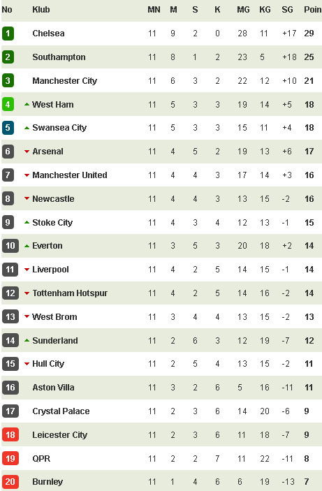 Dalam 11 pekan awal, Arsenal meraih hasil imbang melawan tim-tim kuat semacam Everton, Manchester City dan Tottenham. Di hadapan Chelsea, Arsenal malah menyerah 0-2. Terkini, Arsenal bahkan dihantam Swansea City 1-2.