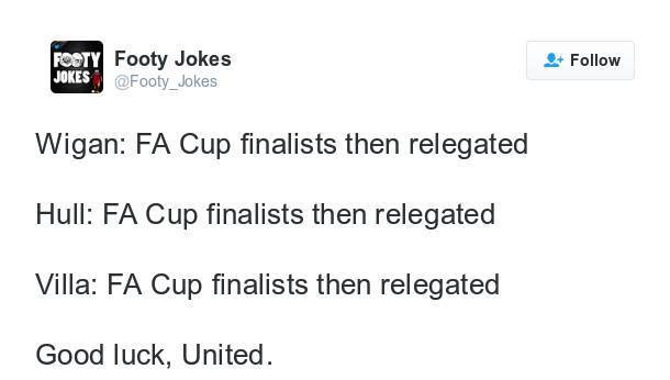 Lantas, apakah nasib serupa bisa menerpa Manchester United? Bisa saja, jika memang kita percaya pada kutukan yang menimpa para finalis tiga finalis Piala FA sebelumnya. Namun tentu saja, kemungkinannya cukup kecil - mengingat MU adalah tim besar yang terus disokong oleh bujet besar guna memperkuat skuatnya dari musim ke musim.