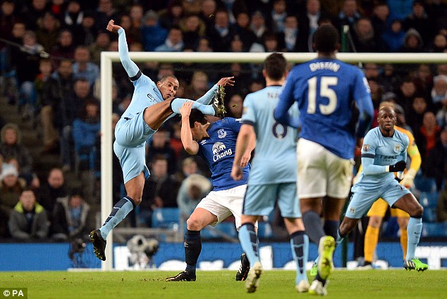 Yang pertama adalah ketika kaki Eliaquim Mangala menghantam punggung Samuel Eto'o dari belakang dalam sebuah situasi tendangan sudut. Wasit Andre Marriner mengganjar kartu kuning kepada pemain asal Prancis tersebut.