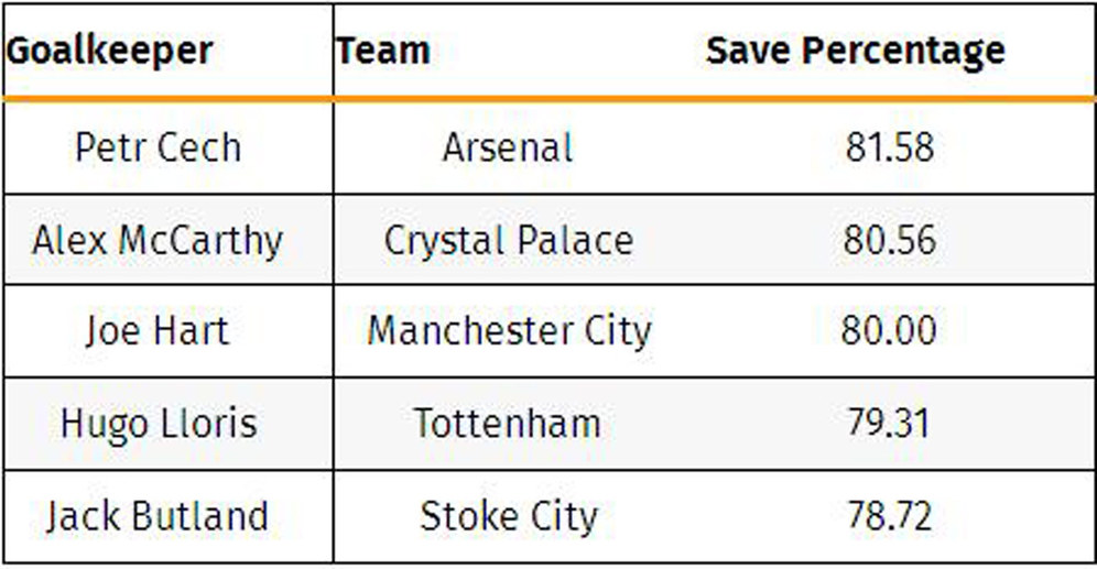 Berdasarkan laporan yang diperoleh, mantan kiper Chelsea tersebut mengumpulkan jumlah poin prosentase save sebesar 81,58%. Catatan tersebut mengungguli kiper hebat lain di daratan Inggris, seperti Joe Hart dan Hugo Lloris.