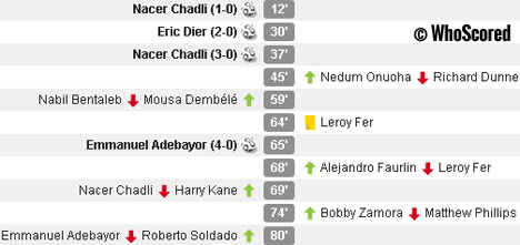 Sejumlah fakta dan statistik positif maupun negatif muncul dari laga di White Hart Lane ini. Diolah dari situs resmi Premier League, berikut rangkumannya.