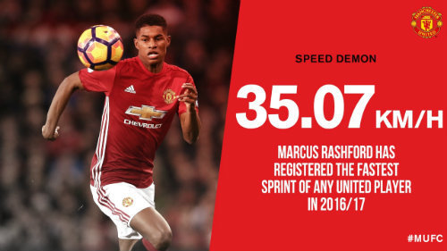 Bola.net - - Marcus Rashford menjadi pemain tercepat di skuat Manchester United sejauh ini di musim 2016-17 setelah mampu berlari secepat 35 kilometer per jam di pertandingan lawan Middlesbrough.