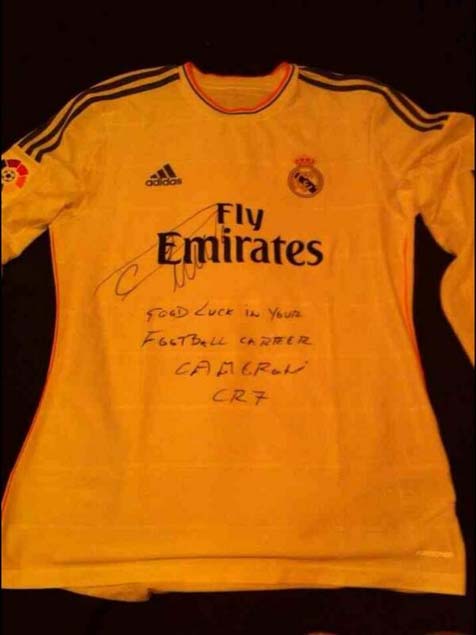 Pada jersey yang diberikan Ronaldo kepada Brannagan tersebut, tertulis dengan jelas dukungan dari sang bintang. Apakah ini bentuk upaya dari Madrid guna merayu calon bintang The Reds?