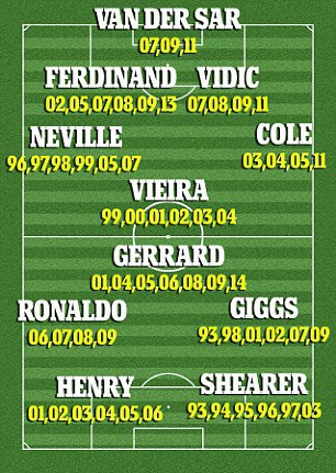 Selain Ronaldo, nama-nama beken lain yang juga masuk dalam susunan tim terbaik Premier League sepanjang masa antara lain adalah Edwin van der Sar, Gary Neville, Ryan Giggs, dan Eric Cantona.