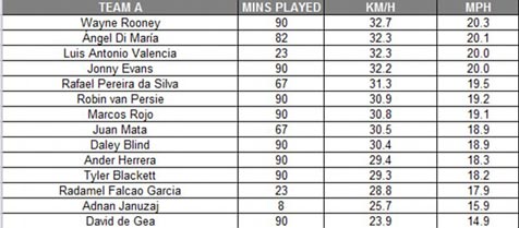 Fakta menarik tersaji ketika ternyata Wayne Rooney adalah pemain palung cepat United dalam pertandingan itu. Rooney mencatatkan kecepatan 32,7 kilometer per jam ketika adu sprint melawan Rio Ferdinand. Berikut adalah top speed pada pemain United kala menghadapi QPR.