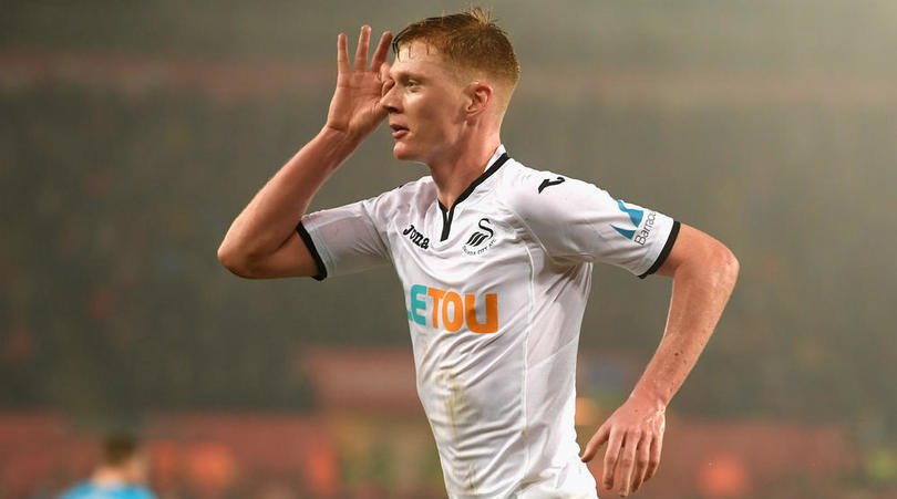 Sang gelandang mencetak dua gol kala timnya menang di Liberty Stadium dan merayakan suksesnya dengan gestur yang sama.