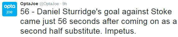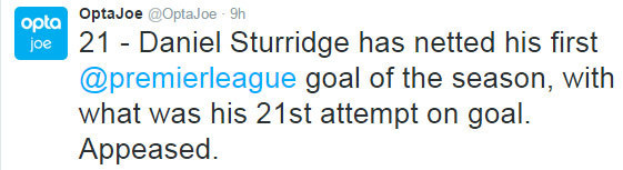 Gol tersebut adalah gol pertama Sturridge di Premier League musim ini. Dia sudah melalui perjalanan yang cukup panjang untuk mendapatkannya, yakni 21 tembakan dalam 11 pertandingan.