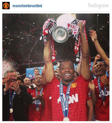 United mengunggah foto Evra sedang mengangkat trofi juara Premier League, sembari menambahkan kalimat berikut: