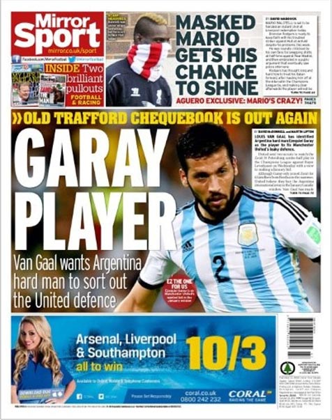 Manajer Louis Van Gaal dipercaya sudah mengirim mata-mata untuk memantau aksi Garay membela Zenit St Petersburg di Liga Champions tengah pekan kemarin. Dan meski sang kampiun Rusia tumbang atas Bayer Leverkusen, ia disebut sudah yakin Garay sosok tepat untuk timnya.