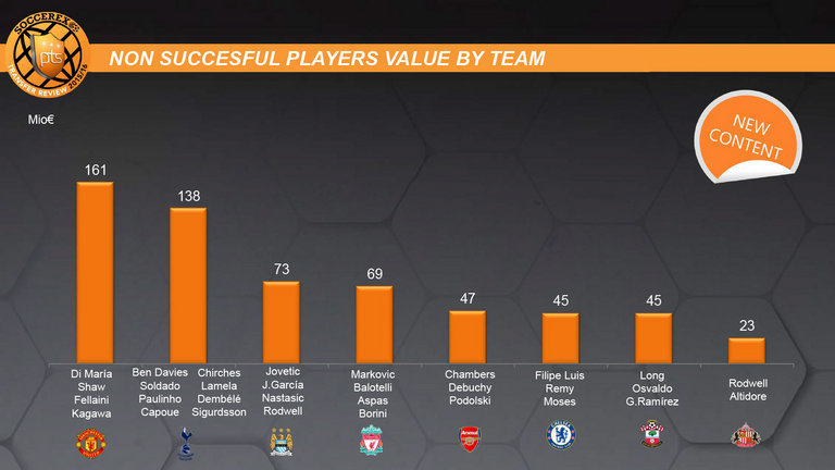 Selain itu, pemain-pemain yang dibeli oleh United juga menduduki peringkat pertama dalam daftar pemain yang tergolong tidak sukses dalam tiga musim terakhir.