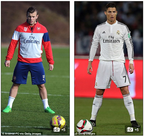 Wilshere, yang sudah tidak pernah bermain semenjak Arsenal kalah 1-2 dari Manchester City di 22 November silam, menunjukkan pose yang sama dengan bintang Real Madrid kala ia menjalani sesi latihan awal pekan ini.