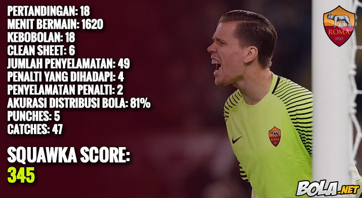 AS Roma baru kebobolan 18 gol dalam 18 pertandingan di Serie A musim ini, paling sedikit kedua setelah (14). Itu salah satunya berkat Wojciech Szczesny dengan 49 penyelamatan yang dilakukannya. Dia cukup pantas berada di tempat teratas.