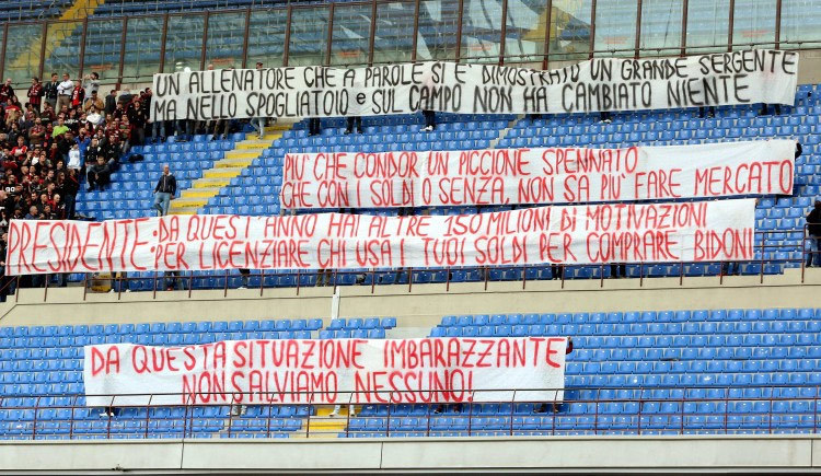 Sebelum kick-off di San Siro (Milan menang 2-1), para Milanisti di Curva Sud membentangkan sejumlah banner besar. Isinya adalah kecaman terhadap Presiden Silvio Berlusconi, Wapres Adriano Galliani dan pelatih Sinisa Mihajlovic. Kemarahan mereka juga ditujukan kepada para pemain.