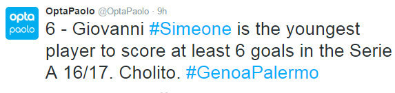 Dari semua pemain yang telah mencetak minimal enam gol di Serie A 2016/17, Simeone adalah yang termuda.