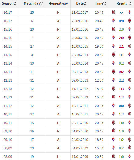 REKOR KANDANG MILAN VS FIORENTINA (SERIE A)