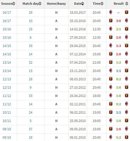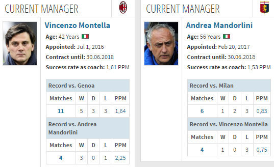 Bola.net - - Peringkat 7 AC Milan (50 poin) akan menjamu peringkat 16 Genoa (29 poin) di giornata 29 Serie A 2016/17, Minggu (19/3). Dalam lima pertemuan terakhir, Genoa telah empat kali mengalahkan Milan.