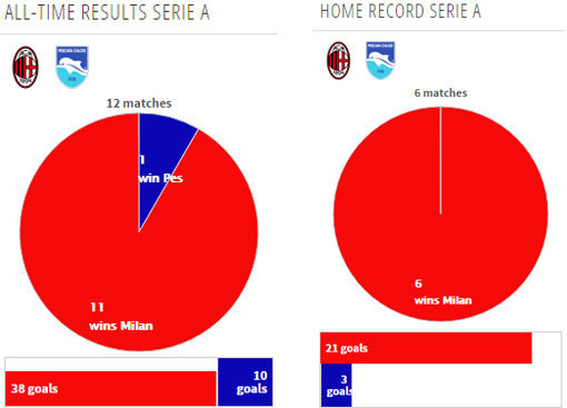 Sejauh ini, Milan selalu menang menjamu Pescara di Serie A. Rekornya adalah enam kemenangan dengan mencetak 21 gol dan cuma kebobolan tiga. [initial]