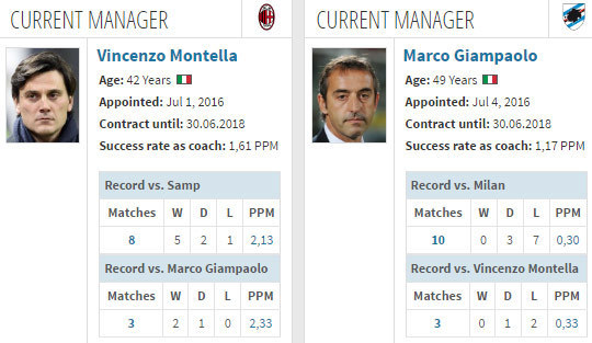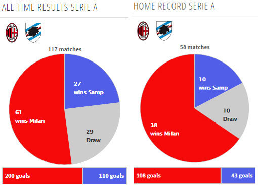 Pada pertemuan pertama di Serie A musim ini, Milan menang 1-0 di kandang Sampdoria lewat gol tunggal Carlos Bacca.