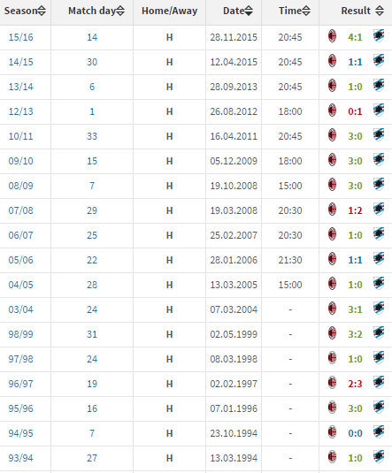 REKOR KANDANG MILAN VS SAMPDORIA (SERIE A)