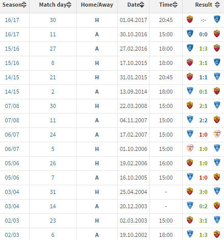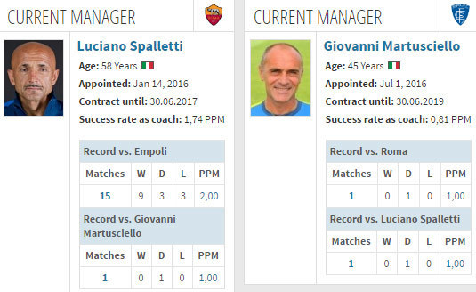 REKOR KANDANG ROMA VS EMPOLI (SERIE A)