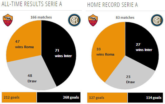 Roma selalu menang dalam enam laga kandang terakhirnya di Serie A. Roma juga tak terkalahkan dalam enam laga kandang terakhirnya melawan Inter di semua ajang. [initial]
