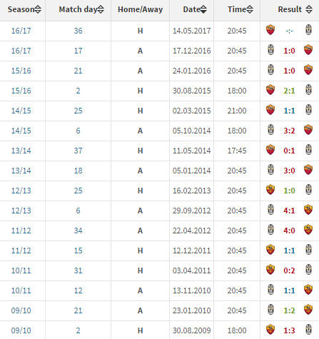 REKOR KANDANG ROMA VS JUVENTUS (SERIE A)