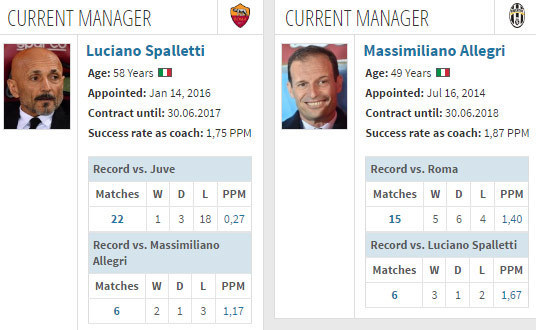 Pada pertemuan pertama di Serie A musim ini, Roma menyerah 0-1 di kandang Juventus. Waktu itu, Juventus menang lewat gol tunggal Gonzalo Higuain menit 13.