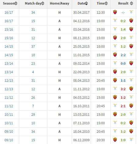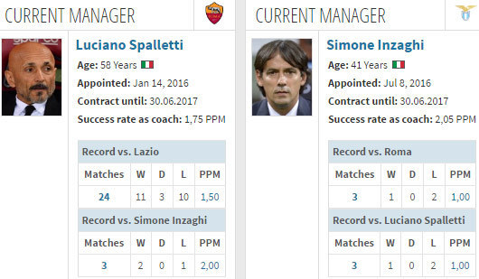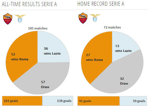 Berikut catatan head-to-head dua pelakon Derby della Capitale ini. Grafik dan statistik: Transfermarkt.