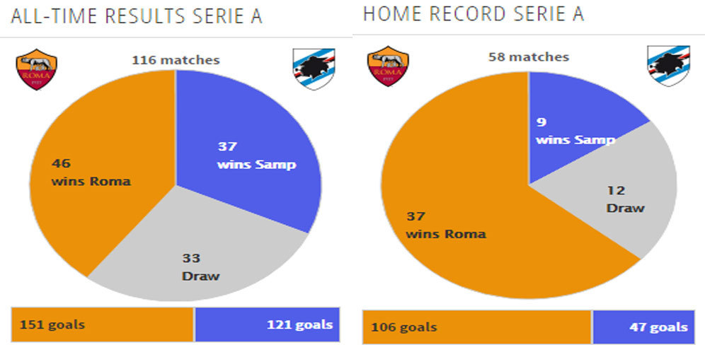 Rekor kandang Roma vs Sampdoria (Serie A)