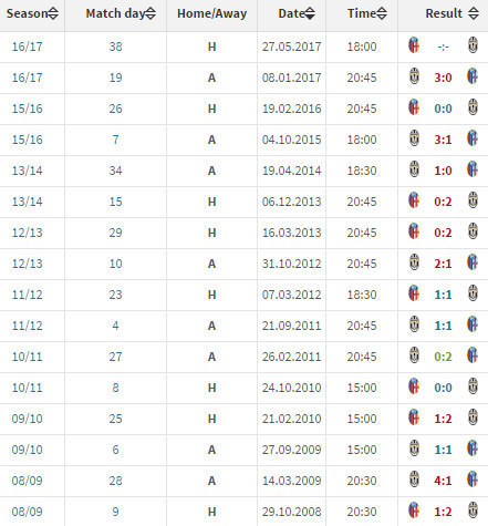 REKOR KANDANG BOLOGNA VS JUVENTUS (SERIE A)