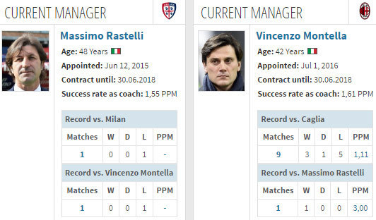 Bola.net - - Peringkat 13 Cagliari akan menjamu peringkat 6 AC Milan pada giornata terakhir Serie A 2016/17, Minggu (28/5). Cagliari selalu kalah dalam dua laga terakhir melawan Milan di Serie A.
