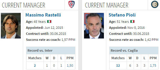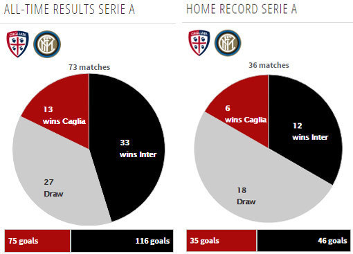 Pada pertemuan pertama di Serie A musim ini, Cagliari menang 2-1 di kandang Inter. Nerazzurri unggul lewat Joao Mario, tapi Cagliari bisa membalikkan keadaan melalui gol Federico Melchiorri dan bunuh diri Samir Handanovic.