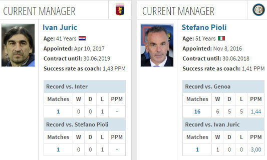 Pada pertemuan pertama di Serie A musim ini, Inter mengalahkan Genoa 2-0 di Stadio Giuseppe Meazza. Inter menang lewat dua gol Marcelo Brozovic menit 38 dan 69, yang semuanya tercipta dari assist Joao Mario.