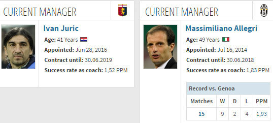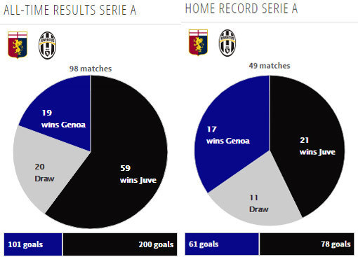 Juventus memenangi 34 dari 38 laga terakhirnya di Serie A. Juventus meraih 5 clean sheet dalam 6 laga terakhirnya melawan Genoa di semua ajang.