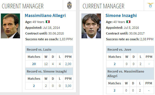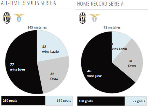 Juventus selalu menang dalam tiga laga kandang terakhirnya melawan Lazio di Serie A. Musim lalu, Juventus menghajar Lazio 3-0 di Turin lewat satu gol Mario Mandzukic dan dua gol Paulo Dybala.