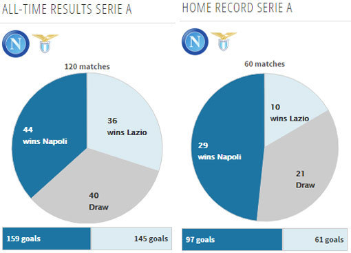 Napoli memenangi tiga dari lima laga kandang terakhirnya melawan Lazio di Serie A. Dalam lima laga itu, Napoli sekali imbang dan sekali kalah.