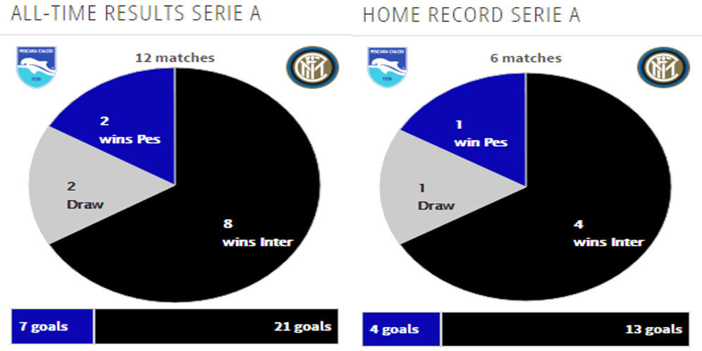 Terakhir kali bertandang ke markas Pescara, yaitu pada musim 2012/13, Inter menang tiga gol tanpa balas. Gol-gol Inter waktu itu dicetak oleh Wesley Sneijder, Diego Milito dan Philippe Coutinho. [initial]