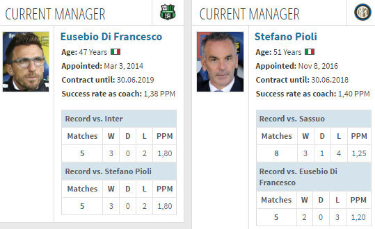 Ketika pertama kali promosi ke Serie A, Sassuolo hancur 0-7 saat menjamu Inter. Dua musim setelah itu, Sassuolo berturut-turut menang dengan skor masing-masing 3-1.